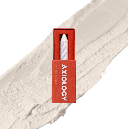 Illuminate your complexion with Axiology's Balmie Highlighter in Frosting, a celestial, pearl-infused stick that imparts an ethereal, icy glow. This velvety, multi-dimensional formula glides onto skin like satin, offering buildable radiance from a subtle lunar sheen to a striking frost-kissed finish. Handmade with a thoughtful blend of nine natural ingredients, they provide a radiant, long-lasting glow—all without a trace of plastic. Each crayon contains the same amount of product as a standard lipstick, making it a sustainable and stylish addition to any beauty routine.