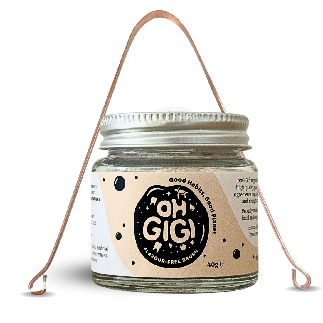 OhGiGi! Organic Tooth Powder 'Flavour-Free Brush' & Pure Copper Tongue Cleaner Oral Detox Kit